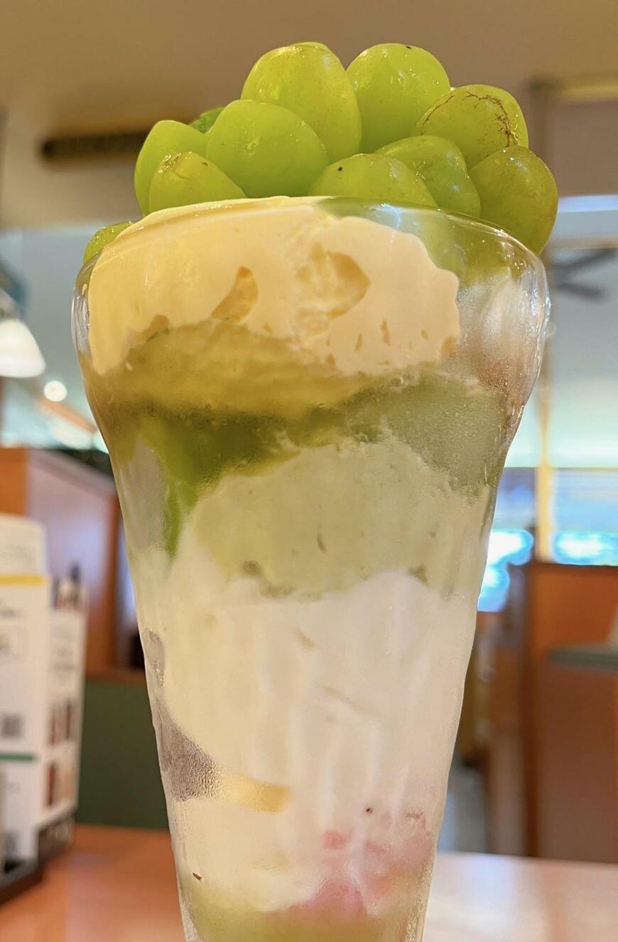 グラスの底の底まで食べたいと思える、絶品なデザートでした。シャインマスカットを心ゆくまで味わいたい人にも、サンデーが大好きな人にも、楽しんでもらえる一品でしょう。