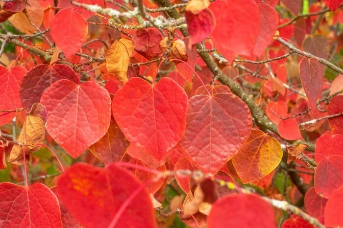 ハート型の葉が可愛らしいマルバノキ。株姿もオシャレで、ガーデンのメインツリーにおすすめです。秋にはグリーンとレッドの葉が入り交じる風景も楽しめます。