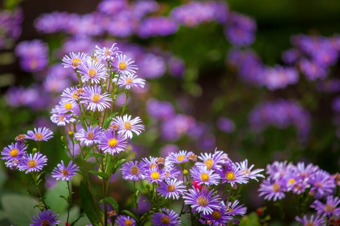 株一面に小花が咲き広がる様子を、クジャクの羽根に例えて名付けられたクジャクアスター。「宿根アスター」とも呼ばれるキク科の花です。