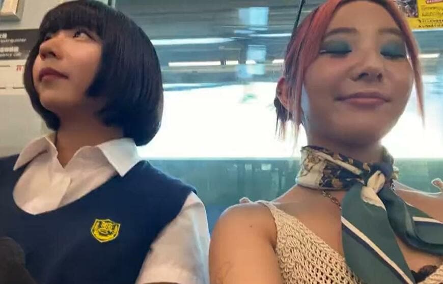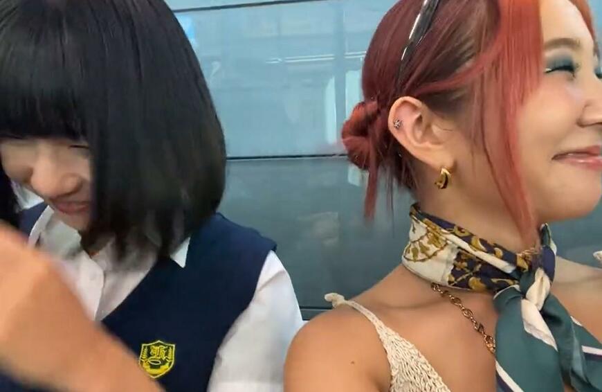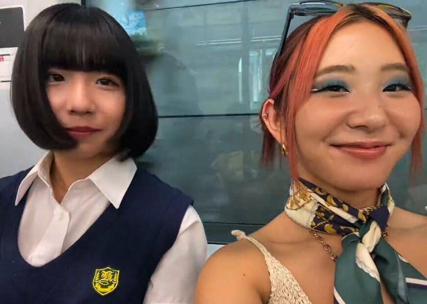 動画に写っているのは、電車らしき場所で自撮りをする女性。そして隣には女子高生と思われる女性の姿もあります。