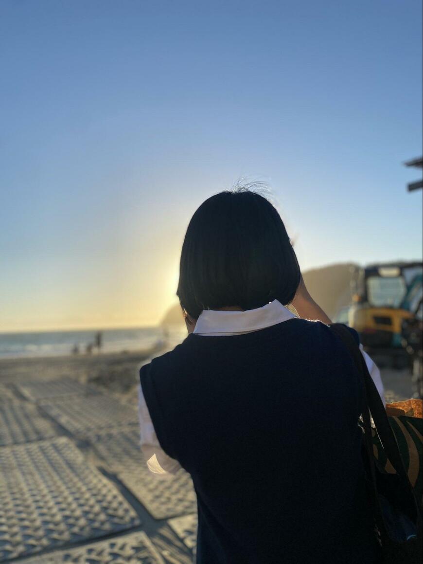 そして動画のあとには、海で撮影された女子高生の写真が添えられています。