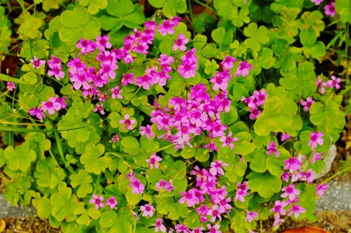 淡い紫やピンクの花が咲き、ハート型の三つ葉も愛らしいムラサキカタバミ。庭の片隅や道端、公園などさまざまな場所でよく見かけるなじみ深い野草です。