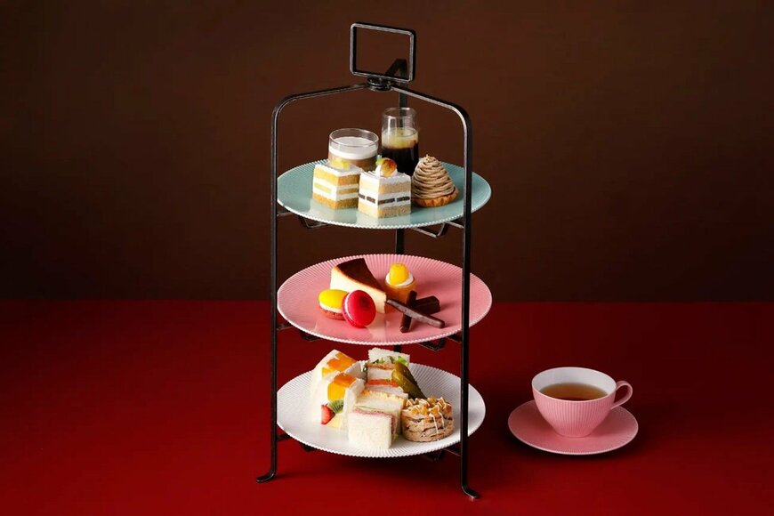 上段ではホテルニューオータニ大阪で人気のモンブランやメロンショートケーキなど、5種類のスイーツを食べ比べることが可能。ホテル最上階の18階で大阪市街を見下ろしながら、優雅な時間を過ごせるアフタヌーンティーです。