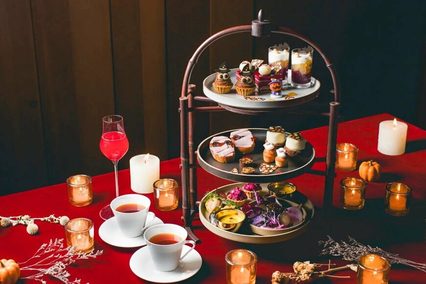 ハロウィンに登場するおばけたちをテーマにした遊び心のあるアフタヌーンティーです。魔女の帽子をかぶったモンブランタルトや、ミイラ男をイメージしたフィナンシェフィグなどをいただけます。