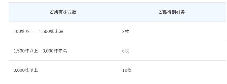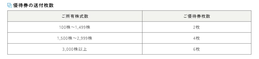 続いて株主優待ですが、日本郵船では「飛鳥クルーズ」の優待券が付与されます。こちらは1枚につき1クルーズ1名様10%の割引となる券です。付与の条件は下記の通りです。