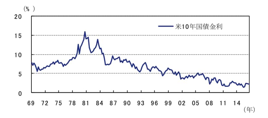 図表1を見ると、米10年国債金利は、1970年代後半頃に急上昇し、その後は1980年代前半頃から現在まで、35年以上も趨勢的に低下していることが分かります。