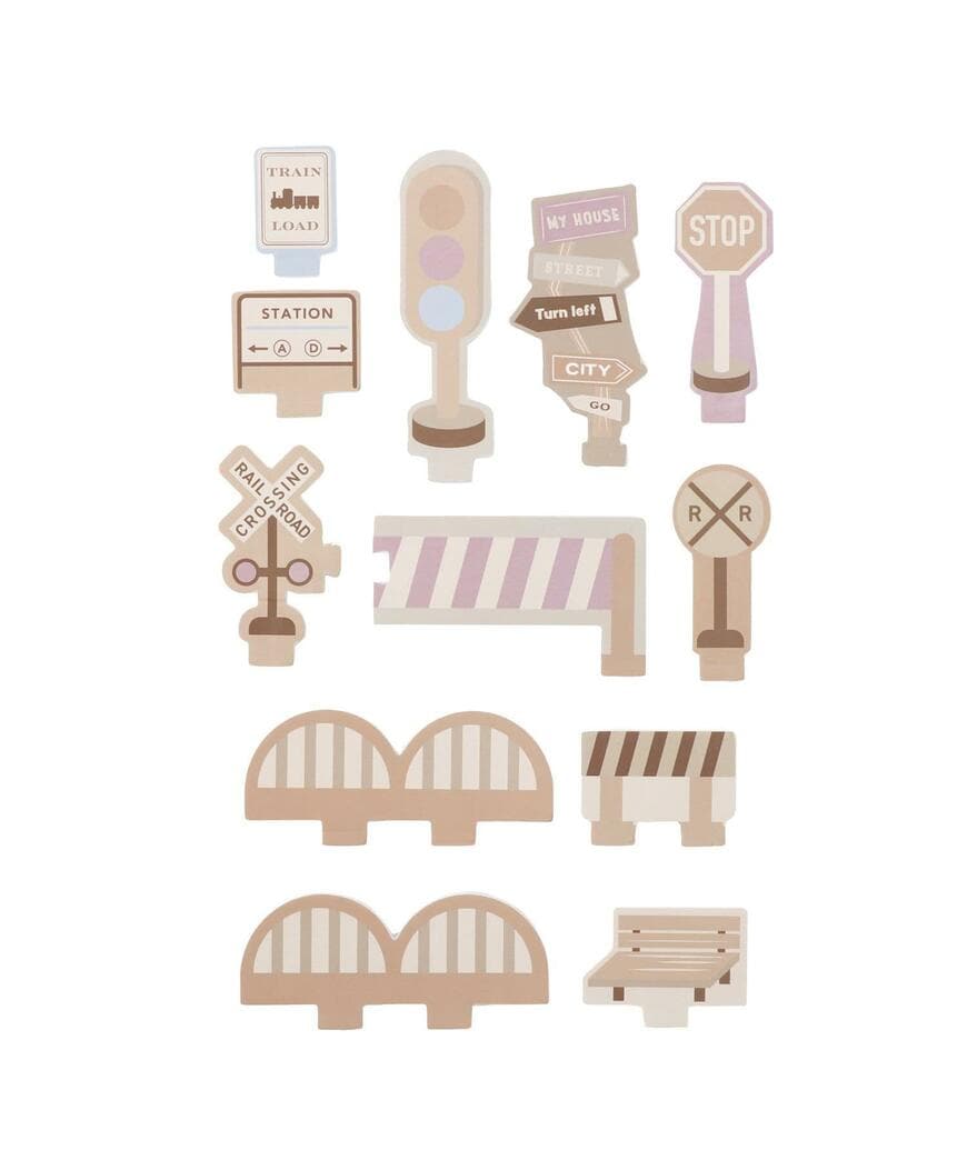 信号機など39ものピースがセットになっています。パーツを組み合わせて、いろいろな遊び方をすることができそうです。