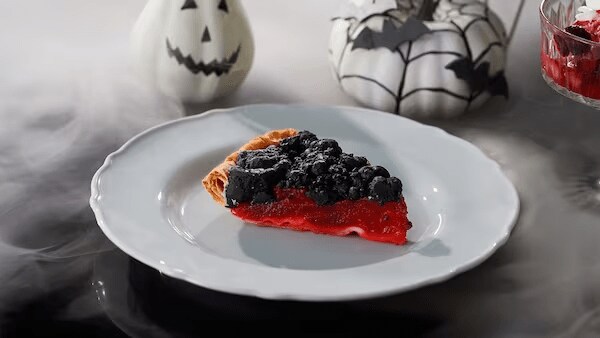 竹炭の黒色とフィリングの赤みの配色がヴァンパイアを思わせる一品です。クランブルのざくざく感と分厚いりんごのシャキシャキ食感がたまらないので、ぜひ試してみてくださいね。