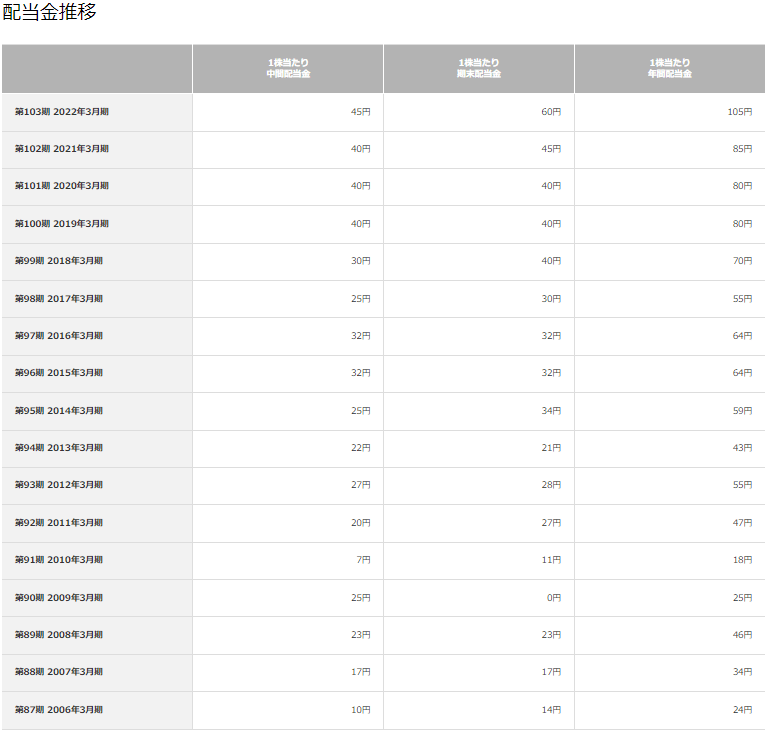 最後に三井物産の株価と配当金の推移を確認しましょう。