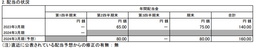 - 2023年3月期・期末配当:75円
