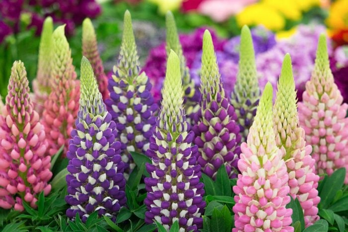 1本の茎にたくさんの小花を咲かせるルピナス。藤の花をひっくり返したような花姿から「登り藤」「逆さ藤」という名前でも親しまれています。