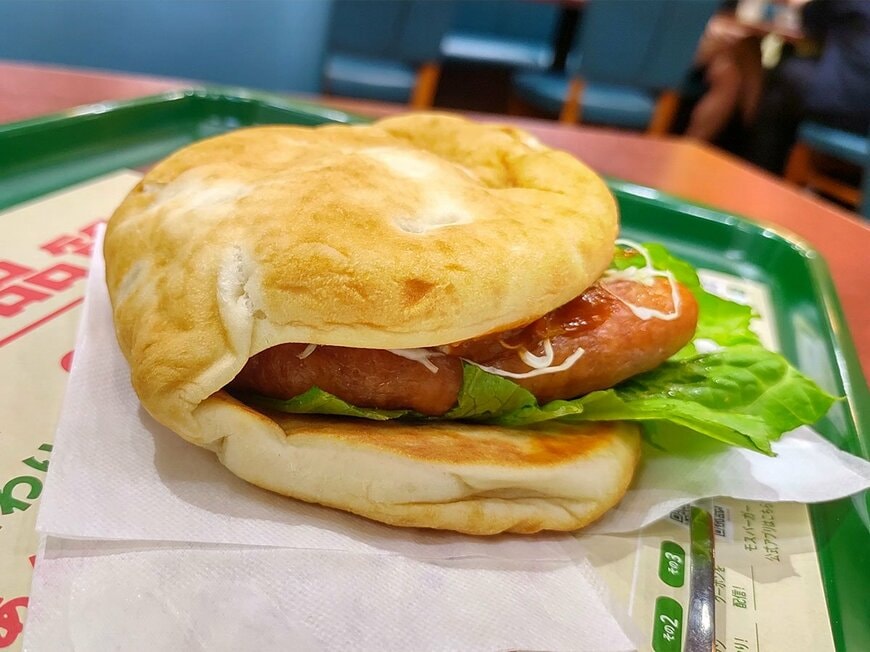 正面から見えていたソーセージですが珍しいU字形となっています。想像よりも太くて噛んだ時にプリッとはじけるような食感。ファストフード店でこんなにしっかりとしたソーセージを食べられるのは驚きです。