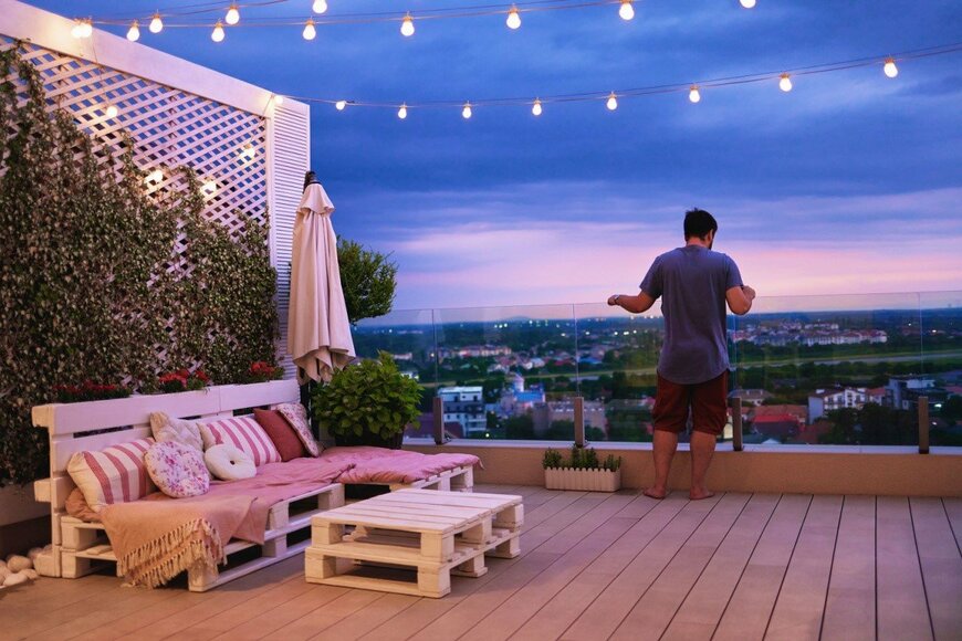 スカイバルコニーとはルーフバルコニーとも呼ばれる屋上のことで、ガーデニングやアウトドアなどさまざまな使い方が可能で、ソファやテーブルなどを設置して屋外のリビングとして利用することもできます。