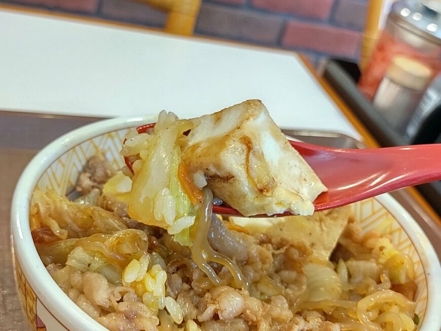 少し焼き目のついた木綿豆腐は固めな仕上がり。野菜に比べてさっぱりとした味わいになっていますね。全体的には味付けが濃いめ。自然とタレがしみ込んだご飯をかきこみたくなります。