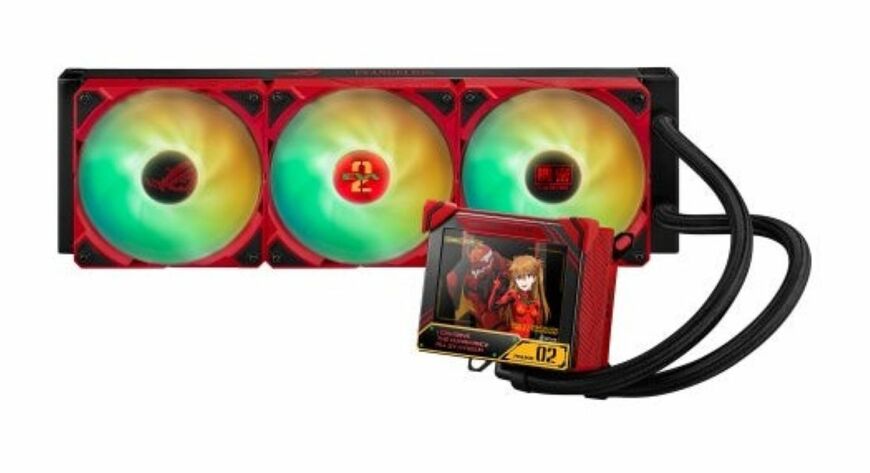 ROG Ryujin III 360 ARGB EVA-02 Editionは、アスカにインスパイアされたアートワークがアルミ製ベゼルの周囲を飾っている。