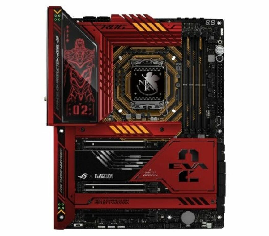 ROG Maximus Z790 HeroのEVA Editionは、「2号機 EVA-02」の特徴である赤とオレンジを基調としている。