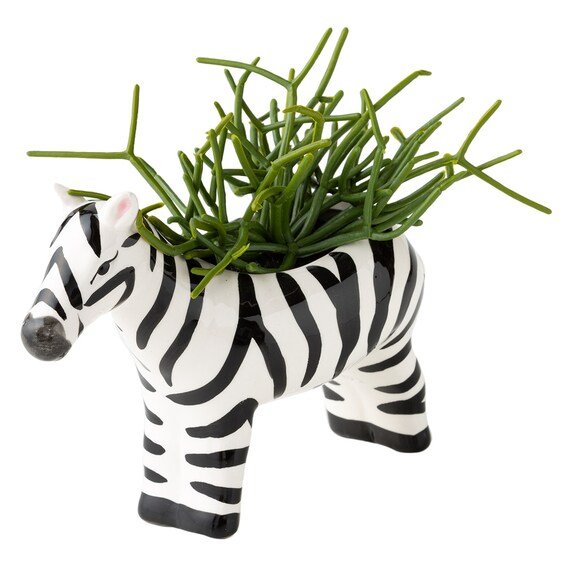 動物のポットに入ったフェイクグリーンです。ポットの種類は、ゼブラとキリンがあります。