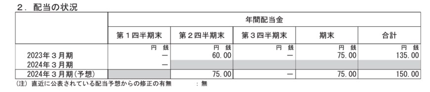 - 2023年3月期・期末配当:75円