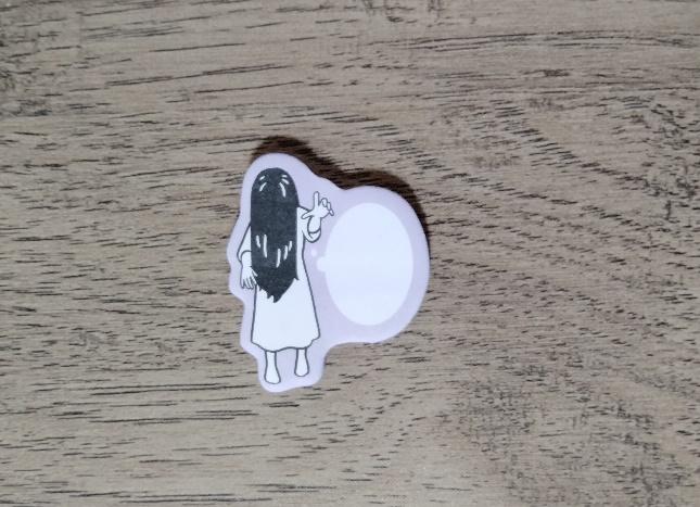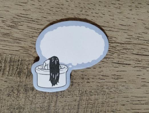 こちらは井戸から出てきている貞子デザインの付箋です。吹き出し付きなので、ホラーなメッセージを書き込んで楽しむこともできます。