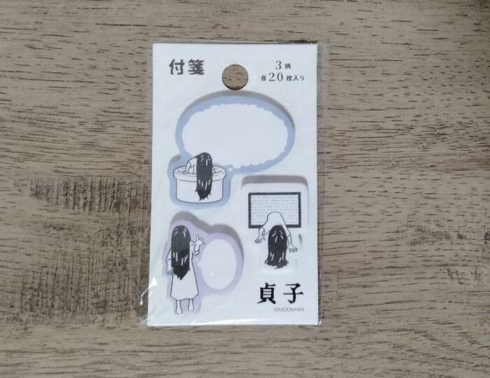 2023年9月には、ジャパニーズホラーの代表作である「貞子」デザインの付箋が販売されているのを発見しました。