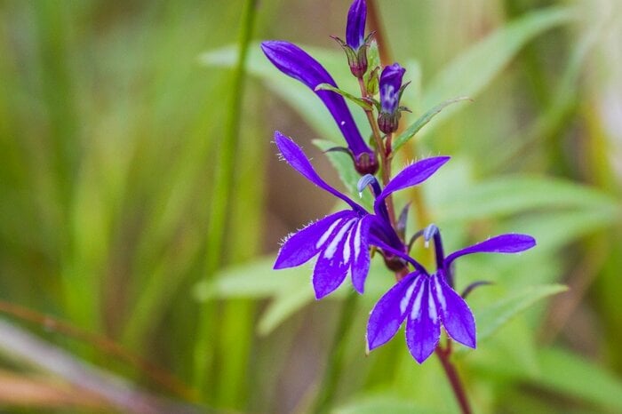 ブルーやパープルの花が清々しい宿根ロベリア。「サワギキョウ」とも呼ばれ、比較的草丈の高い多年草です。ピンクやホワイトの花色もありますが、爽やかな寒色系の品種は格別の美しさです。