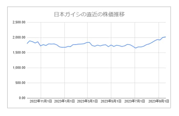 日本ガイシの株式の年間リターンは+6.0%でした。