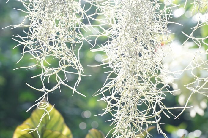 チランジア・ウスネオイデスは、フサフサとした細い銀葉がユニークなエアプランツです。まるで髪の毛のように密集した細長い葉は蒸れやすいため、吊るして飾るのが一般的です。