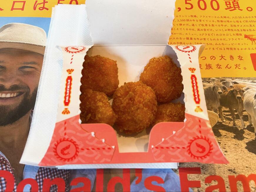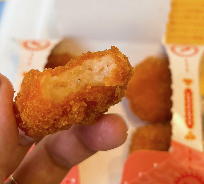 感覚としては、エビフィレオのエビカツをおつまみにしたような感じでしょうか。ソースなどなくても十分においしいですが、9月20日現在チキンナゲット用に発売されている「柚子胡椒マヨソース」と組み合わせるのもいいですよ。味は少し濃くなりますが、まるでタルタルソースをつけたかのようなまろやかさと、柚子胡椒のピリ辛感が楽しめます。