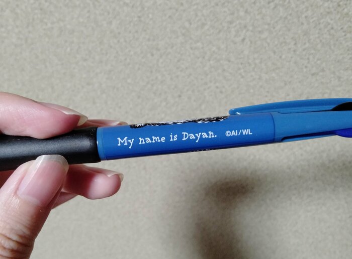 裏面には「My name is Dayan」というロゴが入っています。表も裏もかわいらしいボールペンです。ダヤン好きさんのお気に入りになりそうです。