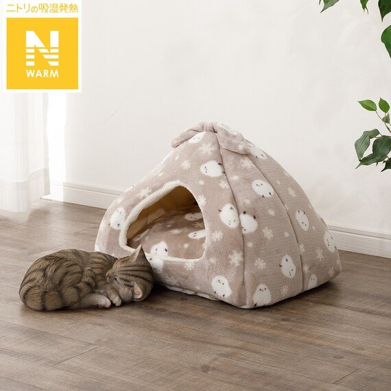 雪の結晶とシマエナガがデザインされています。ニトリの吸湿発熱素材である「Nウォーム」が使われているので、寒い冬でも猫ちゃんが気持ちよく眠ることができます。