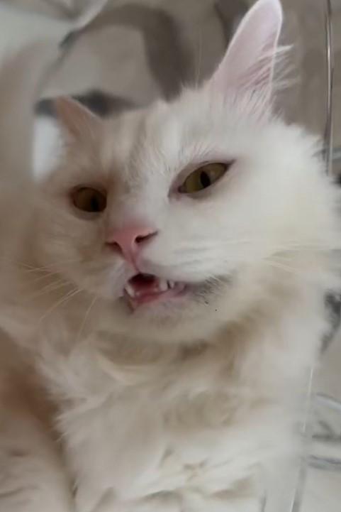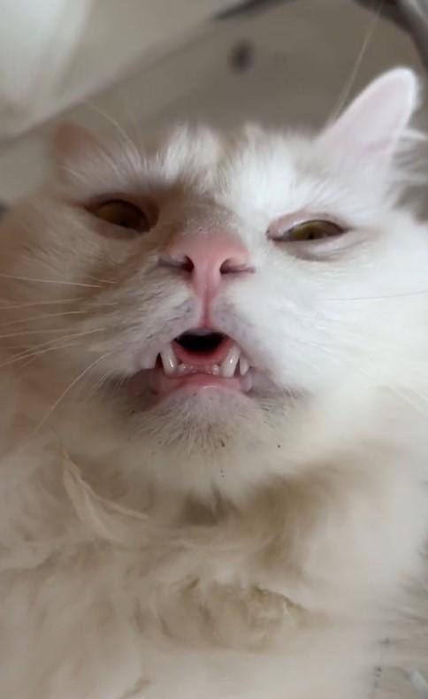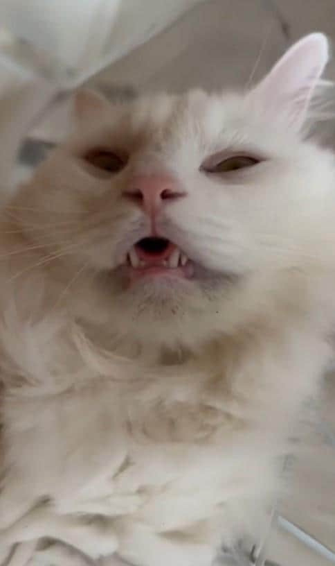 少々ホラーな表情にくぎ付け!猫ちゃんの寝顔が話題