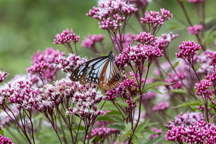 フジバカマは「海を渡る蝶」と言われるアサギマダラが好んで集まる花。