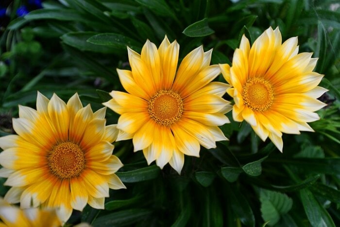 ガザニアは花弁に光沢があり、花色が鮮やか。光輝く花が勲章に似ていることから、「勲章菊」とも呼ばれています。