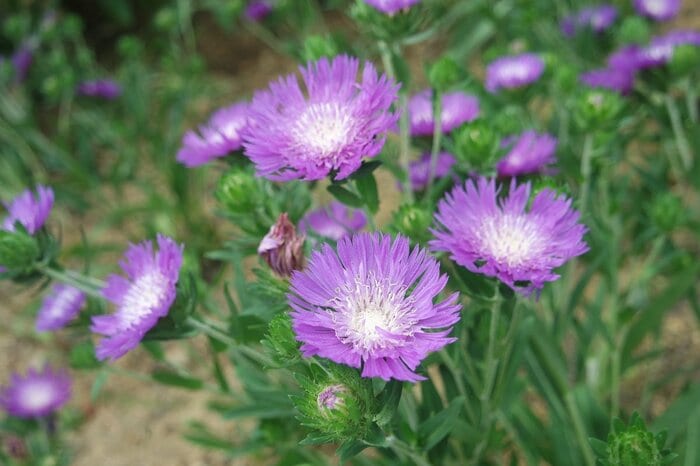 ストケシアは北アメリカ原産で、強健な性質の多年草。切れ込みが入った青紫の花が美しく、日本では「ルリギク」という和名でも知られています。