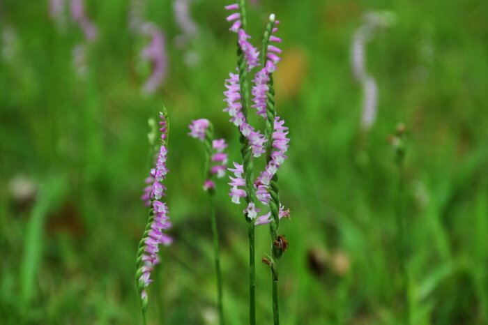 ネジバナは野原など身近な場所でもよく見かける野草。名前どおりらせん状にねじれながら咲くピンクの花が可憐です。個体によって右巻きと左巻きの両方があります。