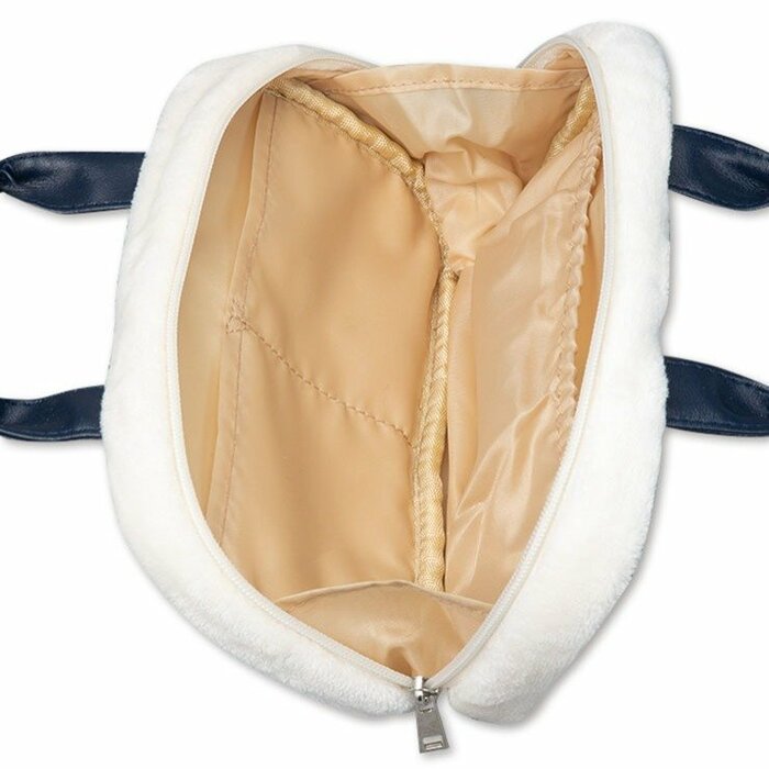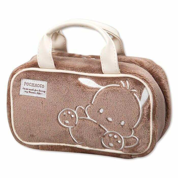 こちらは持ち手つきのポーチです。モコモコとした素材感がぬくもりを感じさせてくれます。秋冬らしいポーチです。