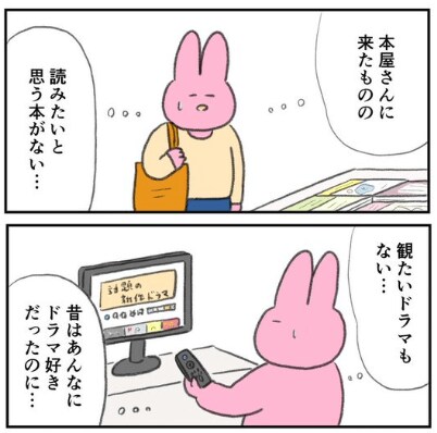 漫画に登場するウサギは、最近心惹かれるものがありません。本屋にきても読みたいと思う本がなかったり、見たいドラマも思い浮かばなかったり…どこか日常の彩りを失ってしまったような感覚に陥っていたのでした。