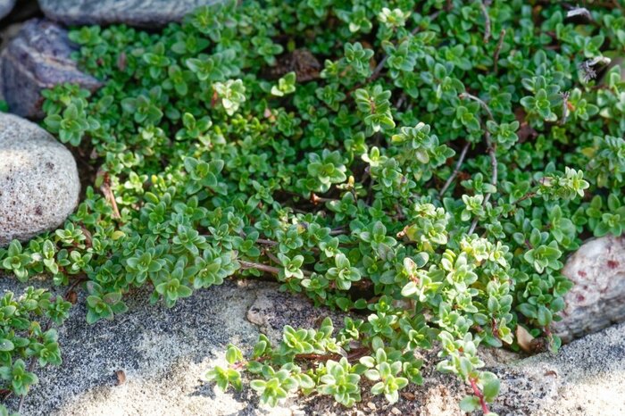 レモンバームはオリーブやローズマリーの前方に植えます。タイムはグランドカバーとして鉢の縁側に、全体のバランスを見ながら植えましょう。