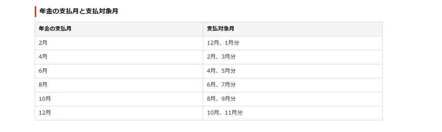 原則として偶数の支払月には、直前の2カ月分の年金が支払われます。