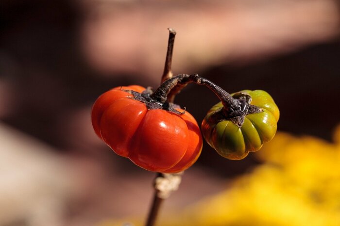 ソラナム・パンプキンは、まるでカボチャのような実がつくナス科の植物。オレンジの実が、まさにハロウィンにぴったりです。多くは苗で販売されているので、寄せ植えにもしやすいでしょう。