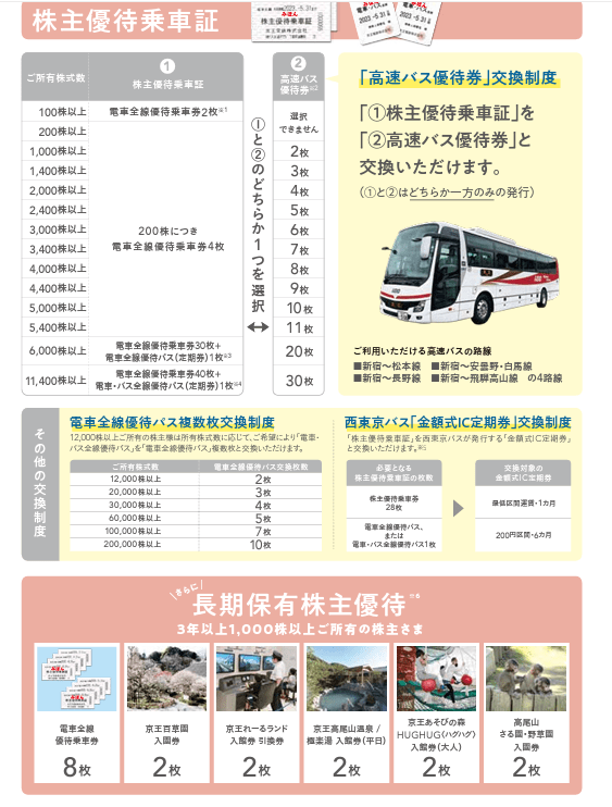 京王電鉄の株主優待は3月31日及び9月30日の最終の株主名簿に記載された100株以上ご所有の株主を対象に、半年に一度贈呈されます。贈呈枚数は所有株式数に応じて異なります。