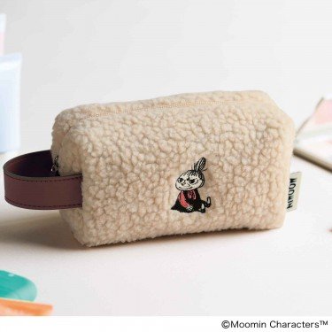 ガバッと開いて物の出し入れがしやすく、マチがたっぷりあるポーチです。コスメも文房具もたっぷり収納できます。また、サイドには持ち手が付いているので持ち運びしやすいのも魅力的ですね。ふわふわボアとリトルミイのキュートな刺しゅうに癒されるデザインです。