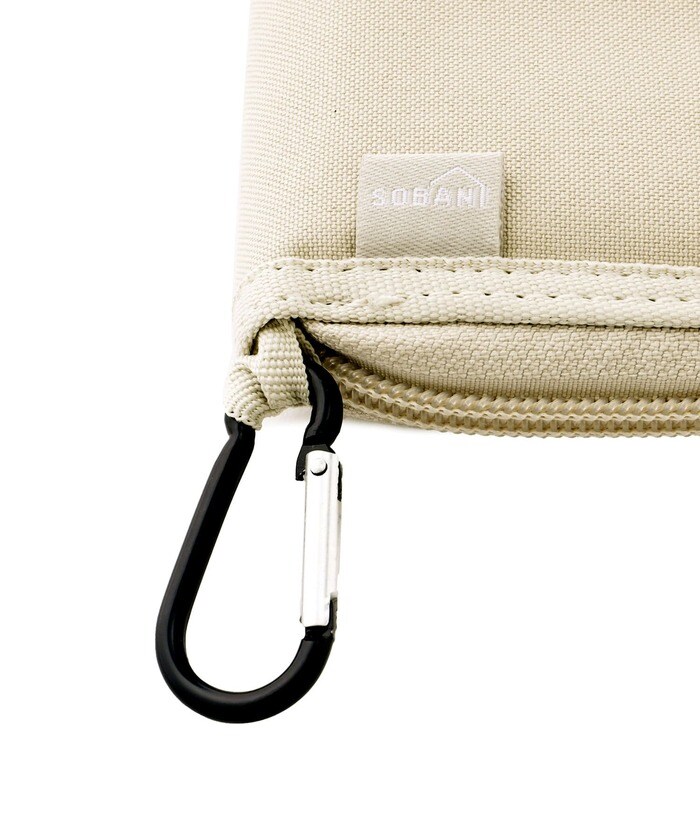 カラビナ付きなのでカバンやベルトなどにぶら下げて使うこともできます。サイズは、約縦7.5cm×横11cmです。ポケットにも収納しやすい大きさです。
