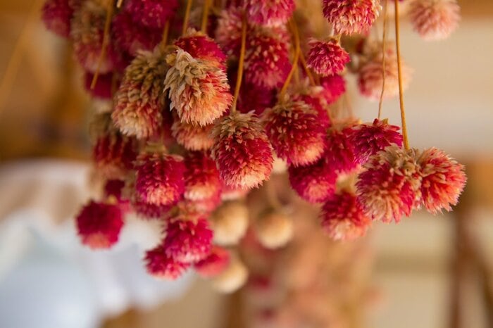 丸い苞が可愛らしセンニチコウは元の花姿とドライフラワー後の変化がない植物です。美しい花色もそのまま楽しめるでしょう。