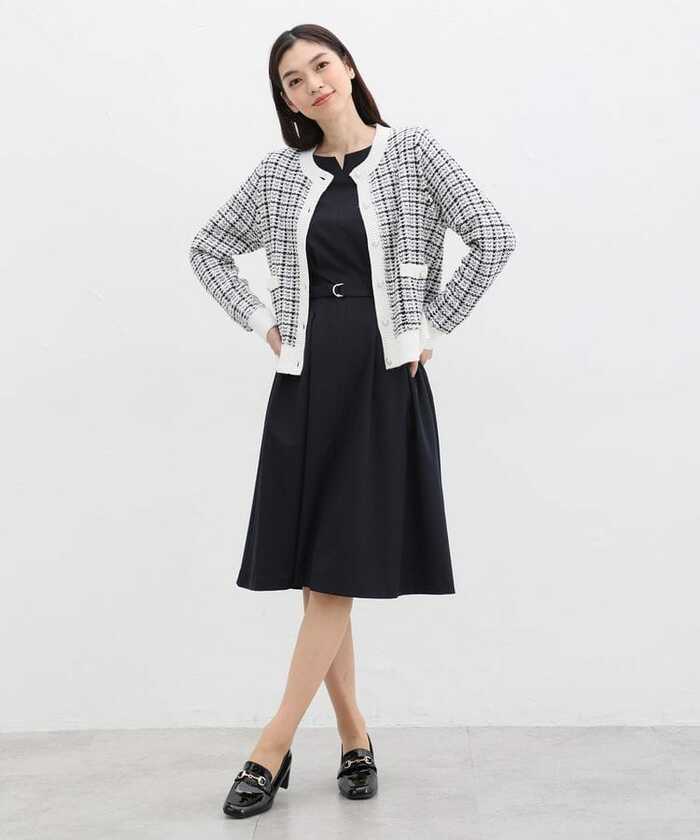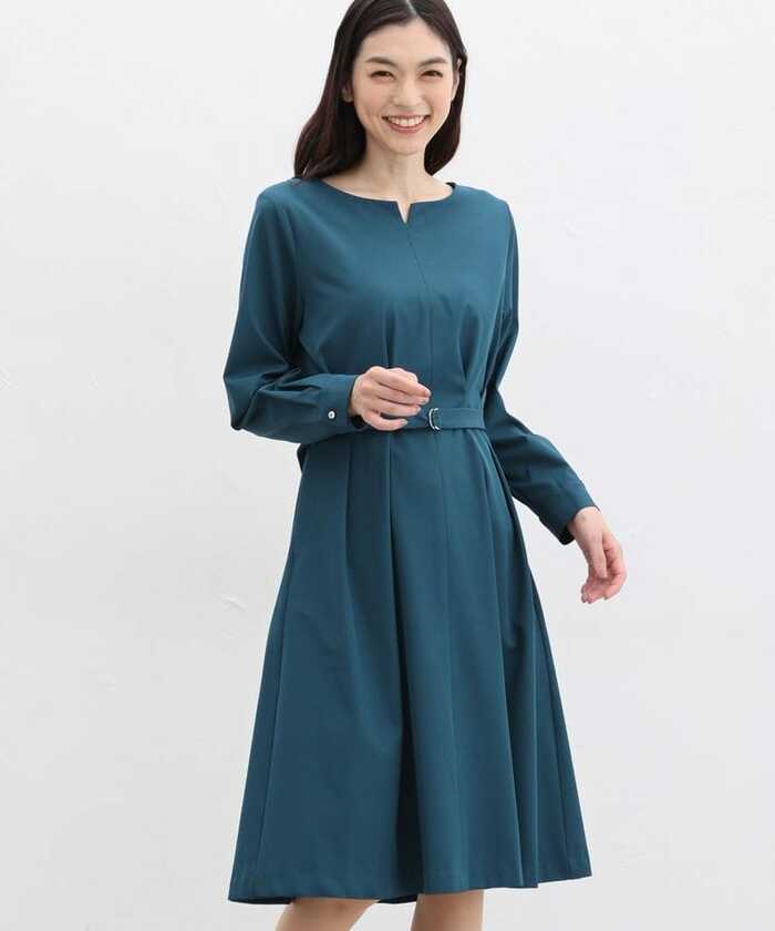 衿ぐりのキーネックが素敵です! 通勤コーデでも活躍してくれそうなタック使いワンピース