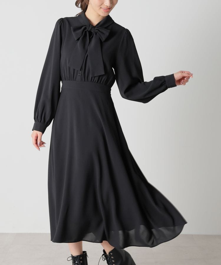 クラシカルなボウタイが大人かわいい! お出かけでも活躍してくれそうなボウタイワンピース