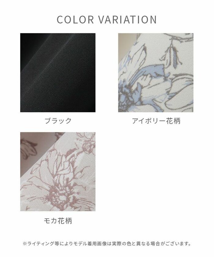- カラー:ブラック、アイボリー花柄、モカ花柄