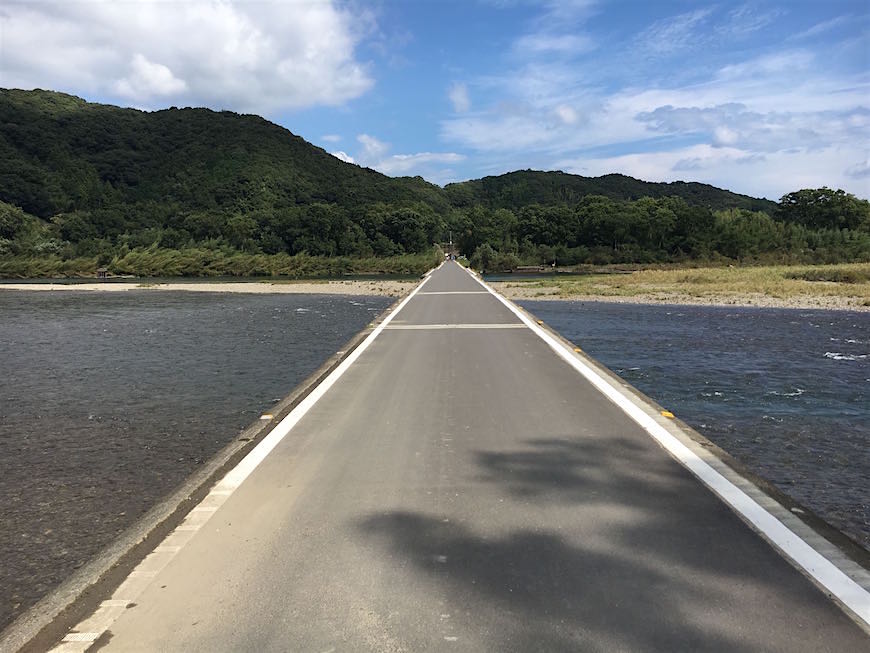 四万十川には、JR高知駅から特急で約1時間40分かけて土佐くろしお鉄道の「中村駅」に着き、そこから自転車で行くのが定番コースです。有名な佐田沈下橋には自転車で約1時間を要します。中村駅からレンタカーを使うこともできますが、上流に行くほど道が細くなるので難しいと思われます。