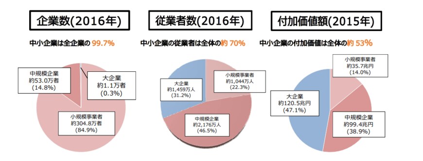 しかし、実際のところ日本の企業数を見てみるとほとんどが中小企業となっており、大企業の数は圧倒的に少数となっています。