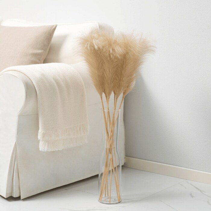 高さ86cmの華やかな穂が特徴のフェイクグリーン、パンパスグラス(シロガネヨシ)です。ナチュラルな秋らしい雰囲気をお部屋にプラスしてくれます。
